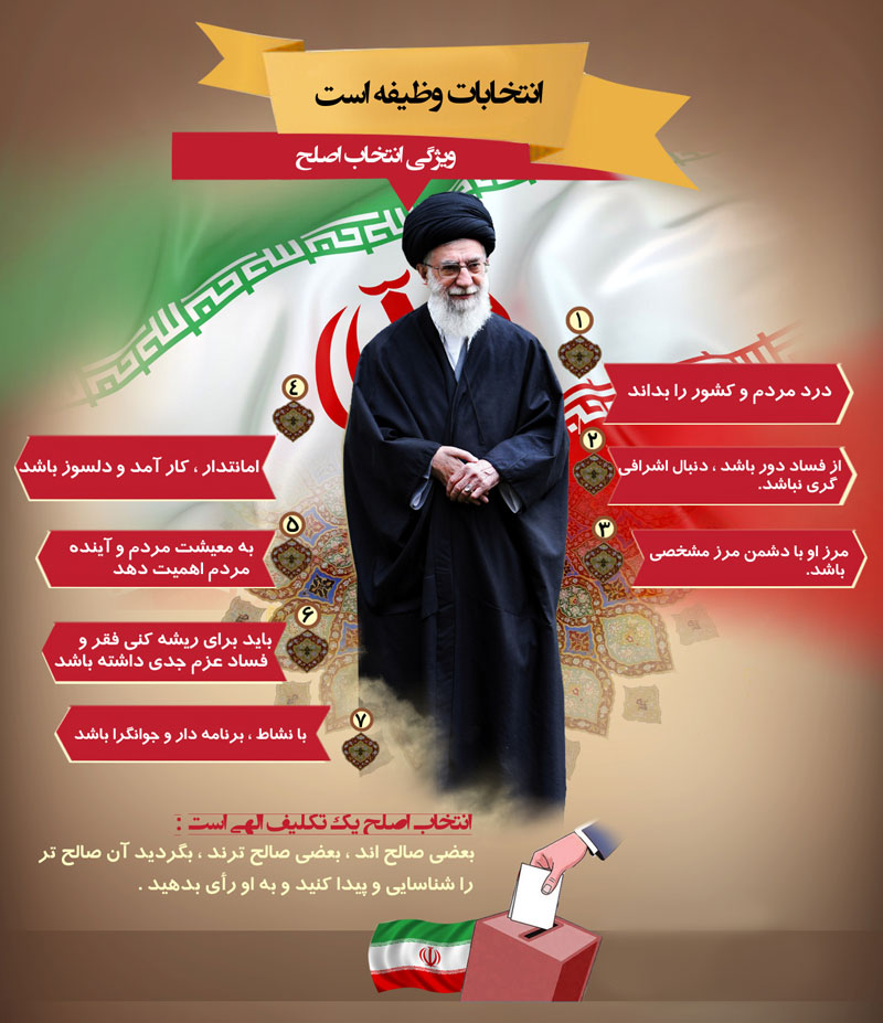 ایشان با نگاهی جامع به تمامی ابعاد این رویداد سیاسی- اجتماعی، شاخص هایِ انتخاب افرادِ صالح به شرح زیر طبقه بندی نمودند