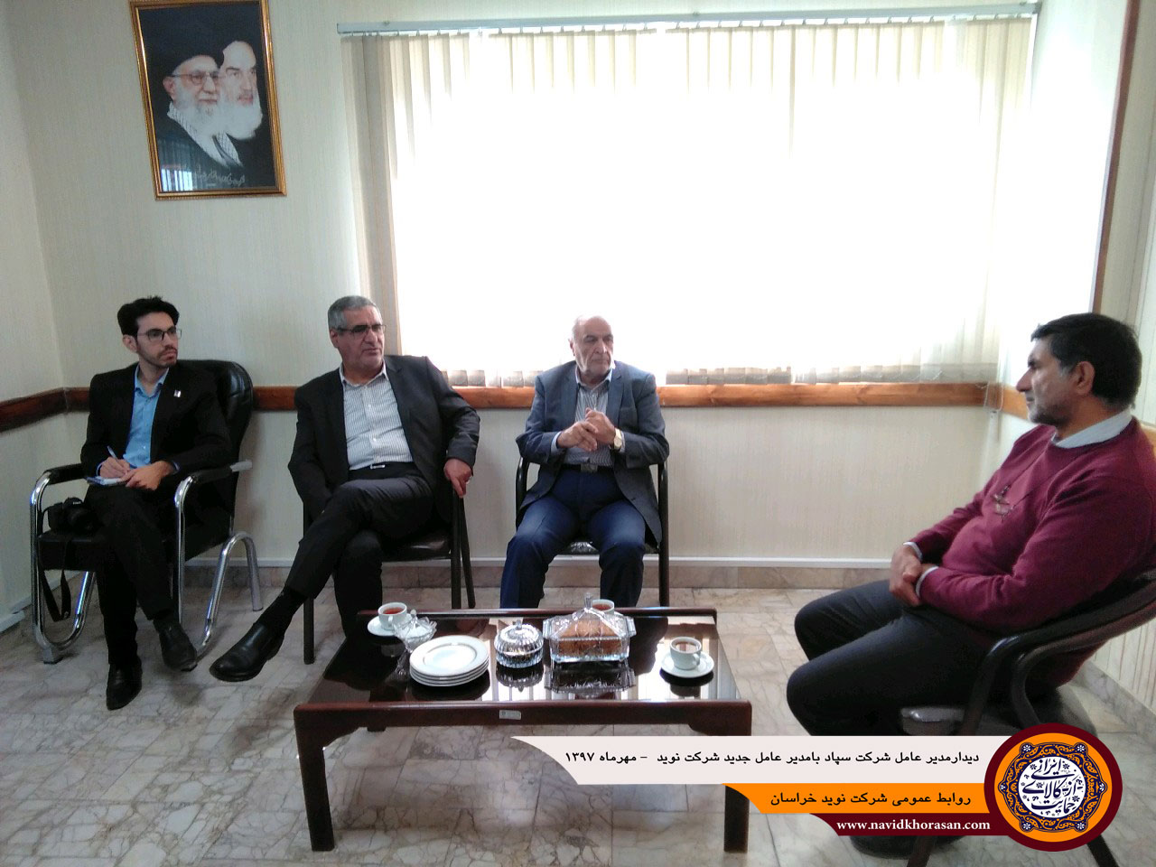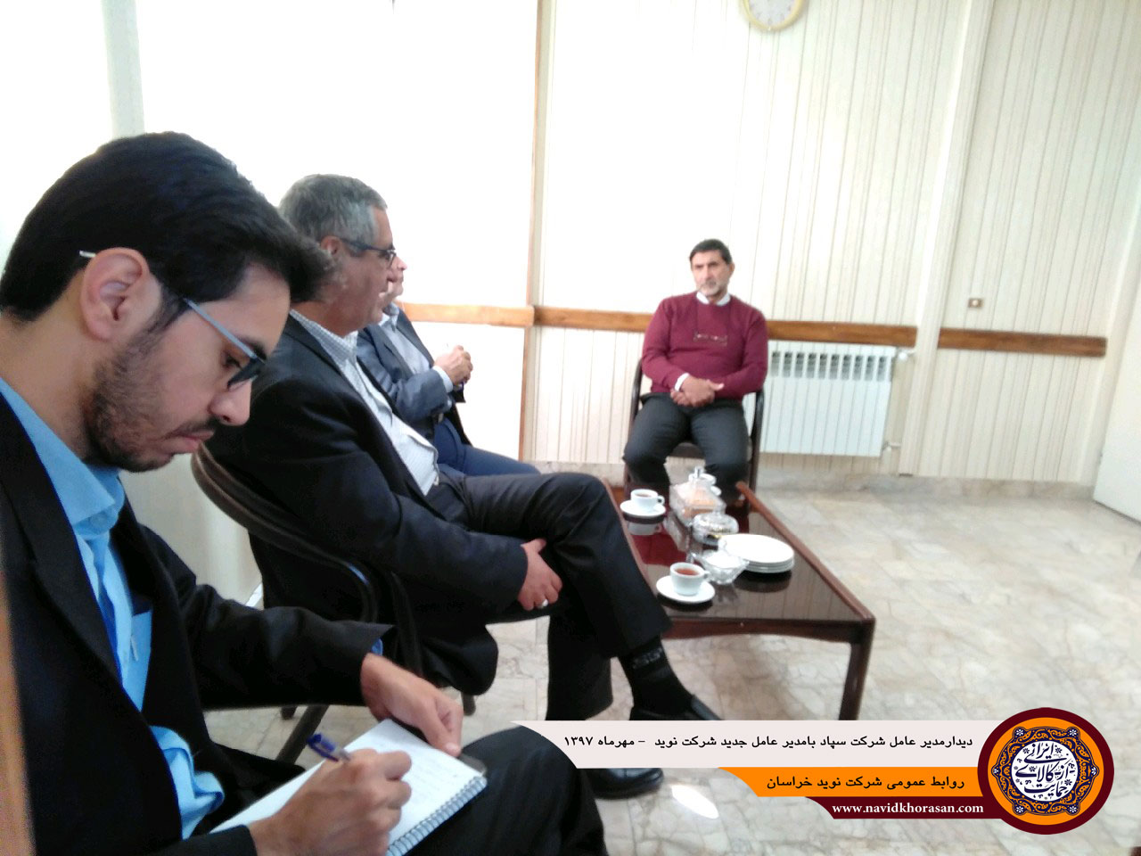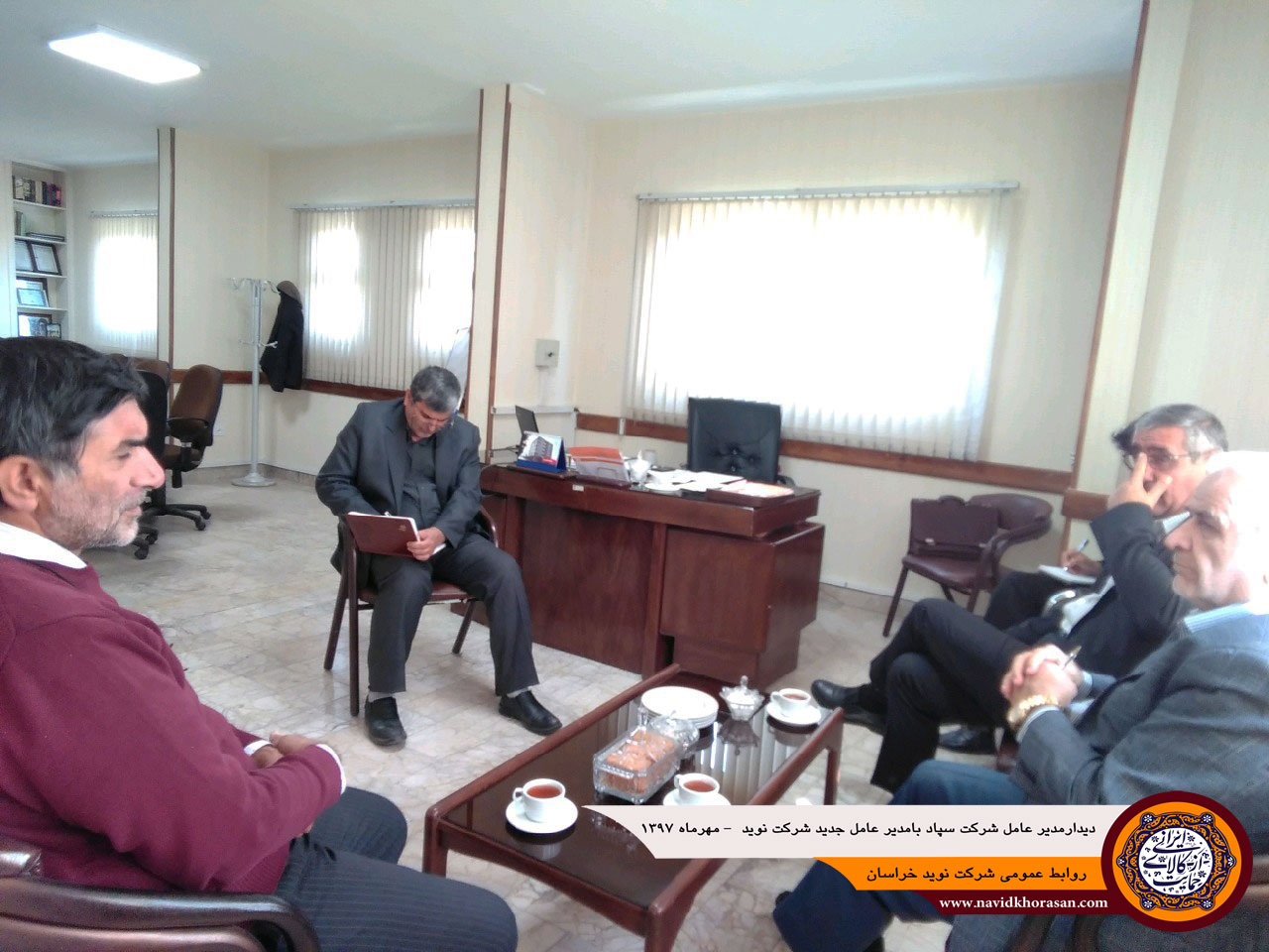 صبح امروز مدیرعامل و تنی چند از مدیران شرکت سپاد ضمن حضور در شرکت نوید خراسان با آقای مهندس جهانیان مدیرعامل جدیدشرکت نوید دیدار و گفتگو کرد.